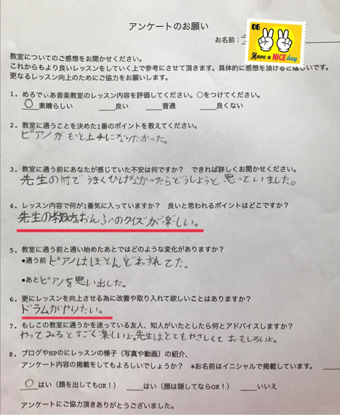 もしかしたら楽典なんてつまらないかも…と心配しましたが、アンケートの回答を読んでホッとしました。
